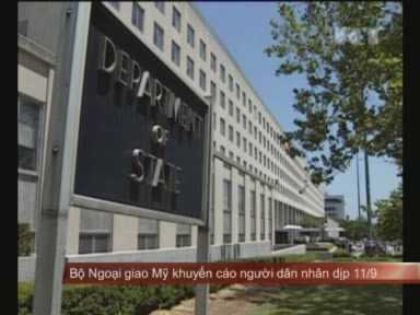 Ngày 2/9, Bộ Ngoại giao Mỹ khuyến cáo người dân nước này cần thận trọng khi đi lại trong những ngày sắp tới do lo ngại các mối đe dọa khủng bố Al-Qaeda vào dịp 10 năm sau vụ khủng bố kinh hoàng 11/9/2001. Tuy nhiên lời cảnh báo không liên quan đến mối đe dọa cụ thể nào.