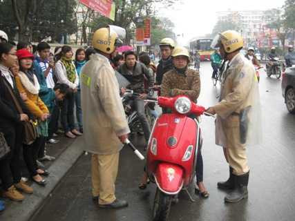 Tại trụ sở của Đội CSGT số 6, cô gái trên được làm rõ là Cung Lan Phương (SN 1986) ở Hoàng Mai, Hà Nội. Phương điều khiển xe Vespa LX không gương mang BKS 29H1-161.22.