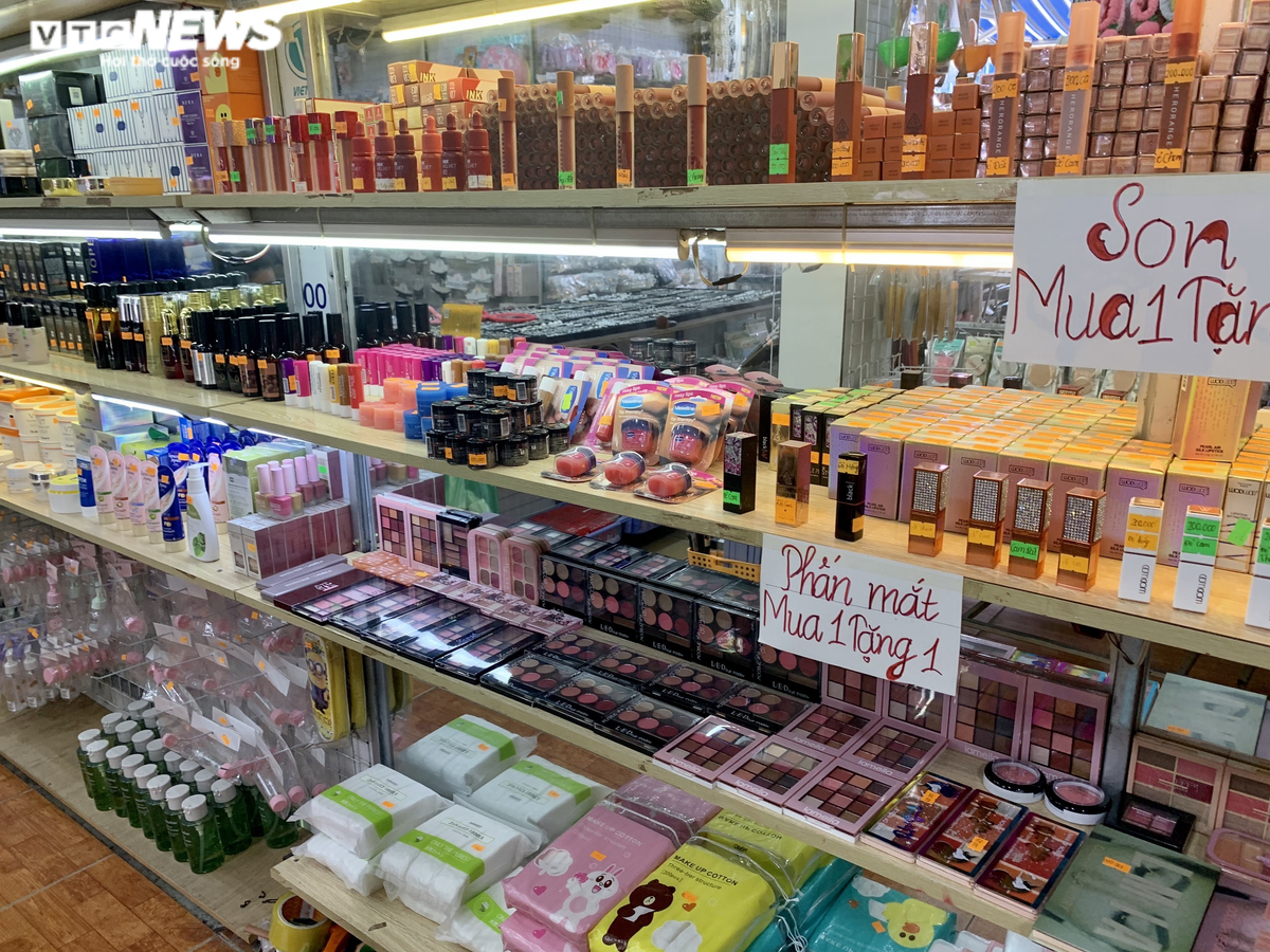 Từ các sản phẩm trang điểm cho đến kem dưỡng da đều được bày bán la liệt tại chợ.