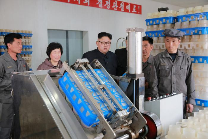 Nhà lãnh đạo Triều Tiên Kim Jong-un (áo đen, đeo kính) đi thăm 1 cơ sở sản xuất.