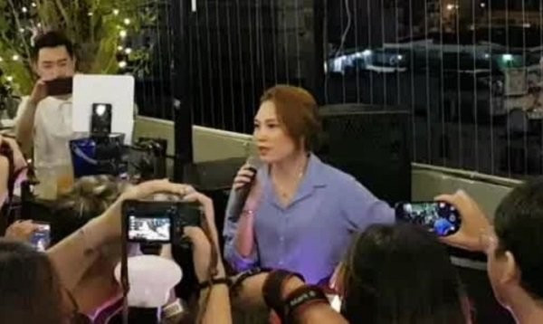 Trong buổi tiệc, Mỹ Tâm phủ nhận tin đồn hẹn hò và khẳng định, cô không dùng ồn ào tình cảm để PR cho các dự án của bản thân. "Họa mi tóc nâu" nhấn mạnh, việc sử dụng tình cảm PR là sỉ nhục nghề nghiệp của cô.