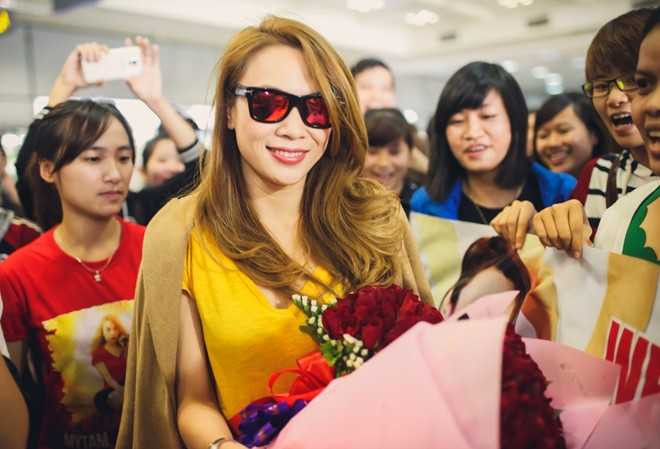 | Vừa đến Hà Nội, nữ ca sĩ cùng ê-kíp nhanh chóng đến sân vận động Hàng Đẫy để tham gia buổi tổng duyệt, chuẩn bị cho concert vào ngày mai. Đêm diễn trước đó diễn ra tại sân vận động Quân khu 7 (TP.HCM) đã thành công tốt đẹp và tạo tiếng vang lớn. |