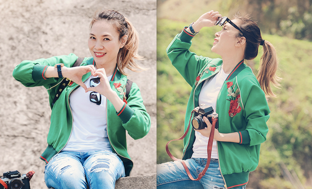 Diện áo thun quần jeans rách cá tính kết hợp với áo khoác bomber, nữ ca sĩ đến thăm những nơi nổi tiếng từng được giới trẻ yêu thích.