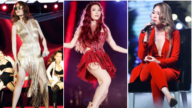 Cô từng khiến khán giả bất ngờ khi diện bộ trang phục màu tím rất sexy, thu hút. Bộ váy đã khoe khéo vòng một sexy cùng đôi chân thon quyến rũ của nữ ca sĩ.