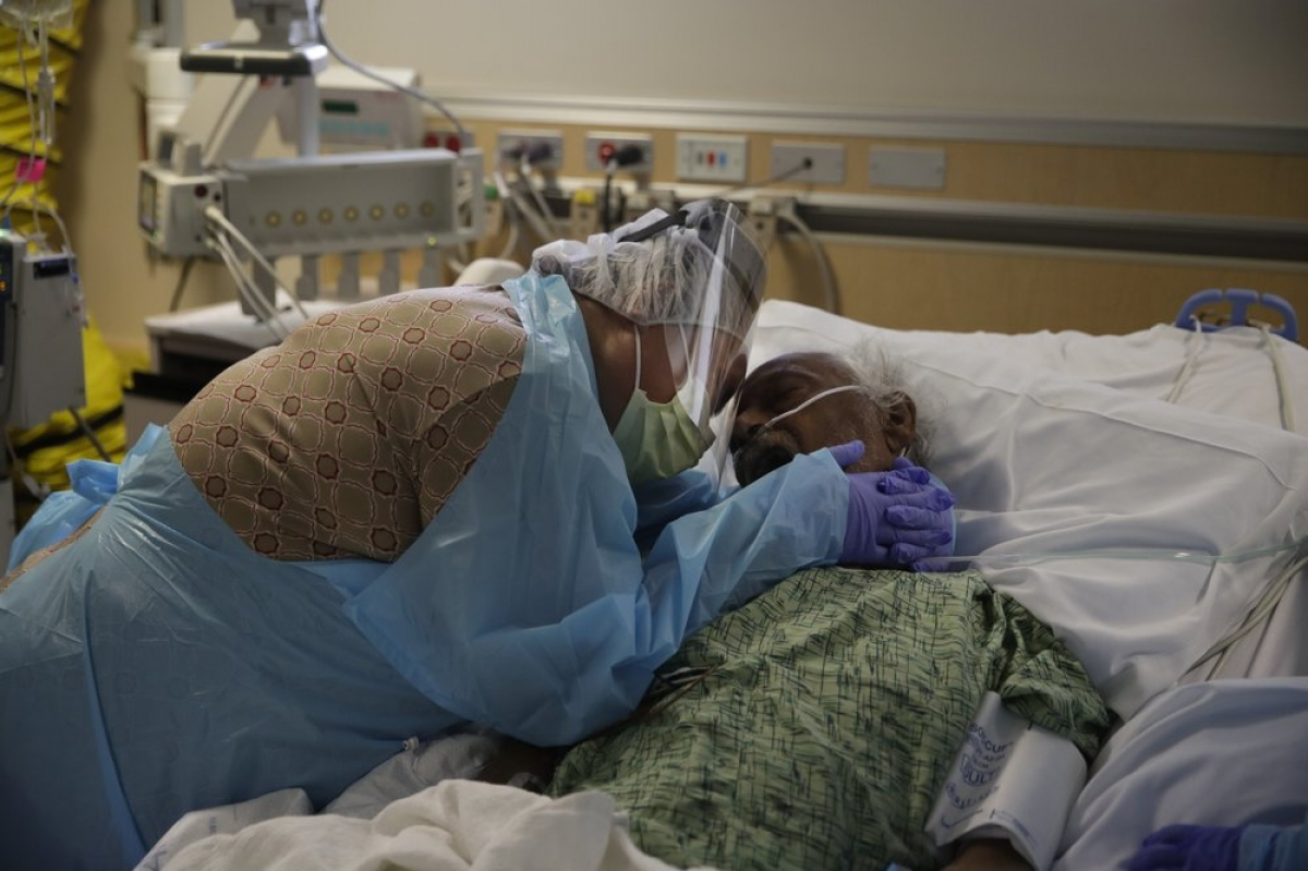 Một bệnh nhân COVID-19 cùng người thân tại trung tâm y tế ở California (Mỹ). Ảnh: AP