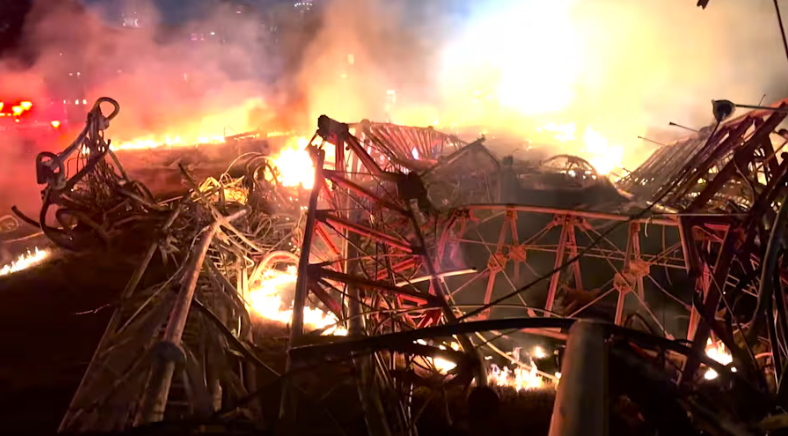 Khỏi và lửa bao trùm hiện trường vụ tai nạn. (Nguồn: New York Times)