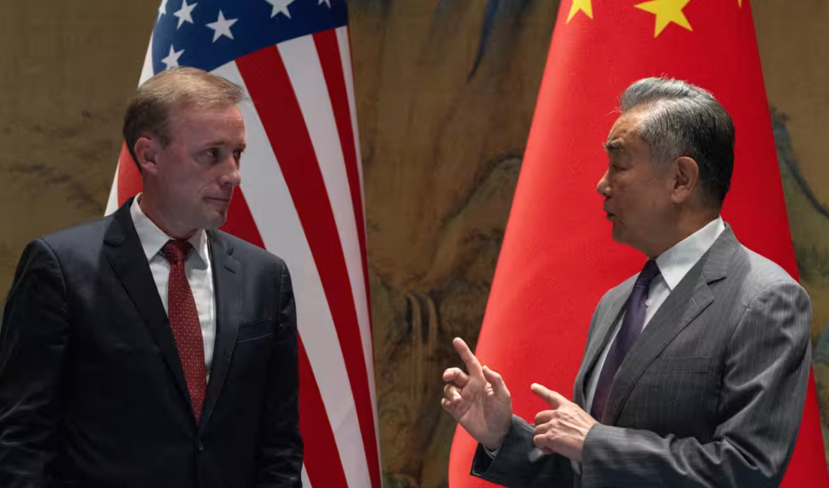 Cố vấn an ninh Mỹ Jake Sullivan và Ngoại trưởng Trung Quốc Vương Nghị. (Ảnh: Reuters)