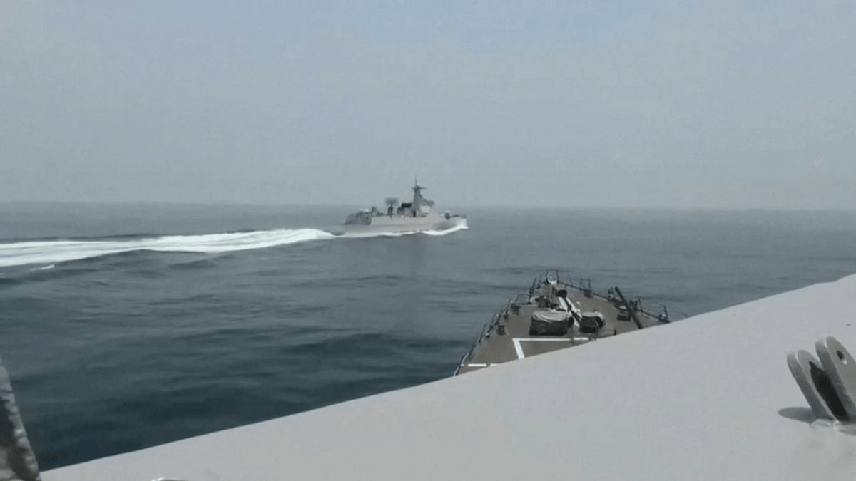 Hôm 4/6, hải quân Mỹ đăng tải lại khoảnh khắc tàu Trung Quốc cắt mặt nguy hiểm tàu khu trục của hải quân Mỹ ở eo biển Đài Loan một ngày trước đó. Washington cáo buộc đó là hành động không an toàn.