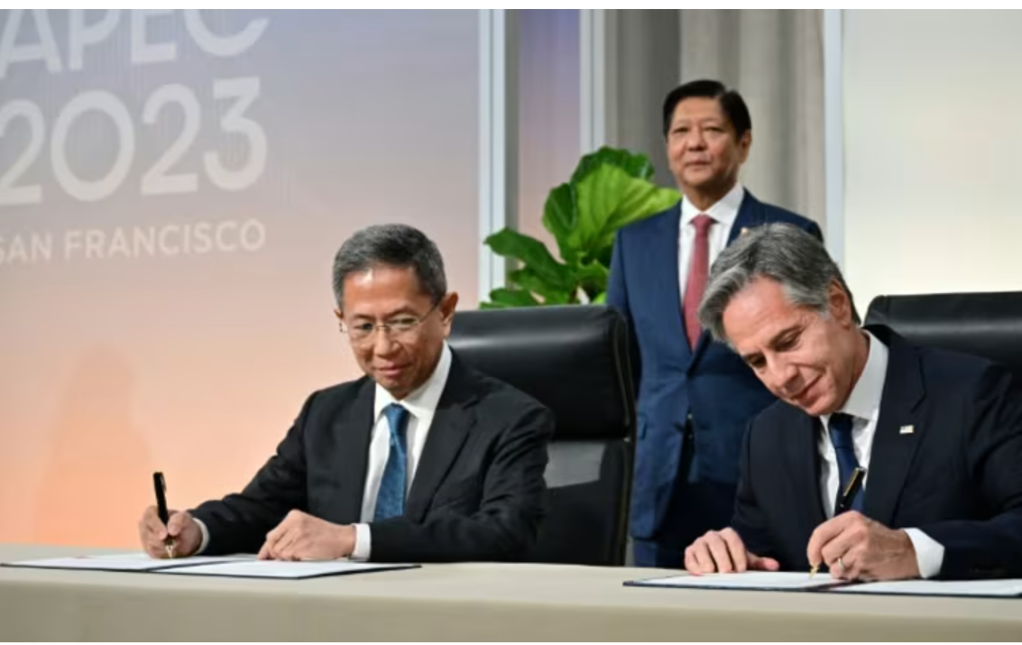 Tổng thống Philippines Ferdinand Marcos, người đã trở thành đồng minh thân cận của Mỹ sau hơn một năm nắm quyền, đã có mặt chứng kiến Bộ trưởng Năng lượng của ông ký hiệp ước với Ngoại trưởng Mỹ Antony Blinken bên lề Hội nghị Cấp cao châu Á - Thái Bình Dương (APEC) 2023 ở San Francisco.