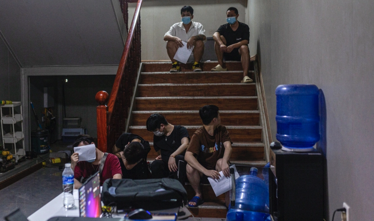 Nhóm người làm việc tại trung tâm lừa đảo và các nạn nhân ở Shwe Kokko, thị trấn Myawaddy, Myanmar. (Ảnh: Getty)