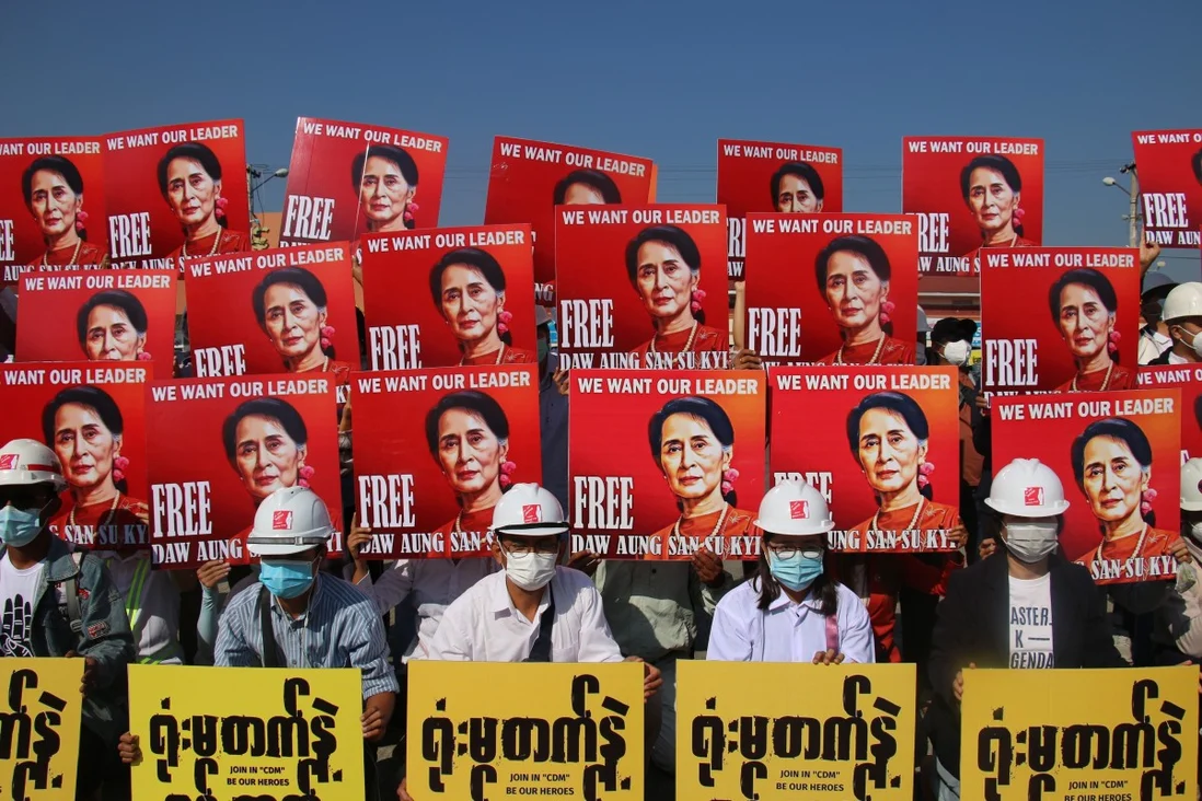 Những người biểu tình kêu gọi quân đội thả bà Aung San Suu Kyi và các quan chức khác của Myanmar bị bắt giữ trong cuộc đảo chính ngày 1/2. Với hàng trăm nghìn người tham gia tuần hành, đây là đợt biểu tình lớn nhất ở Myanmar trong hơn một thập kỷ.