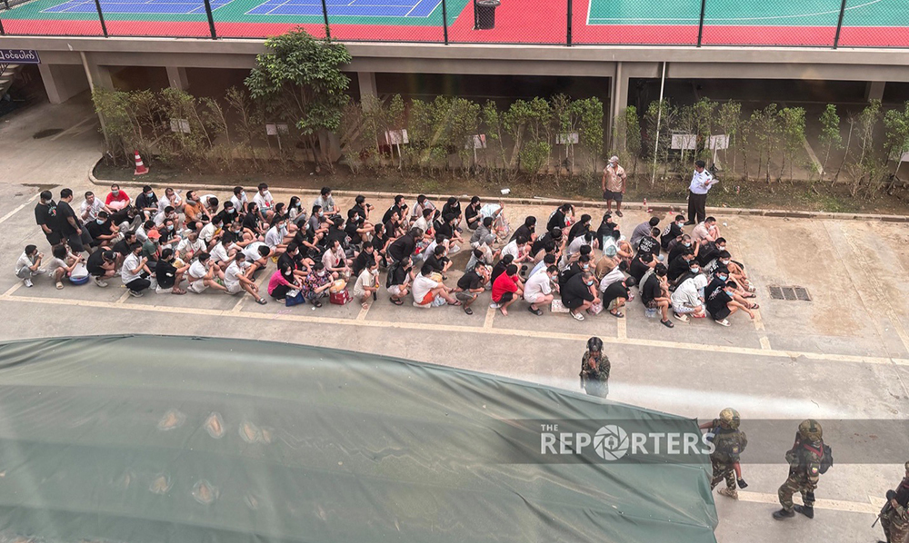 Nhiều lao động tại các cơ sở lừa đảo bị quân đội Myanmar và BGF bắt giữ trong cuộc truy quét tại Shwe Kokko ngày 18/11. (Ảnh: The Reporters)
