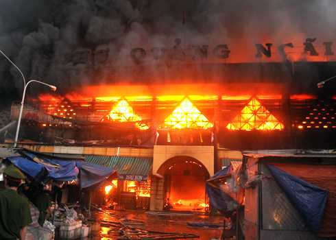 Vào khoảng 4h ngày 9/2, ngọn lửa bùng phát rồi nhanh chóng lan rộng thiêu rụi chợ đầu mối lớn nhất Quảng Ngãi. Khoảng 200 tỷ đồng hàng hóa của hơn 400 hộ kinh doanh trong phút chốc biến thành tro tàn.