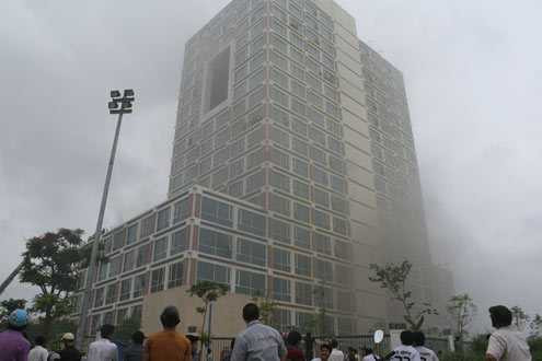 Vụ cháy khiến hàng trăm nhân viên làm việc trong tòa nhà hoảng loạn.