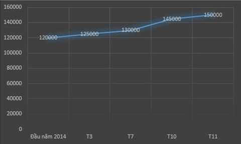 Tính chung 11 tháng đầu năm, tổng doanh số bán ô tô tại Việt Nam đạt 137.602 chiếc, tăng 41% so với cùng kỳ năm 2013. Trong đó doanh số bán ô tô con đạt 87.218 chiếc, tăng 42%, còn doanh số bán xe tải đạt 50.384 chiếc, tăng 40%.