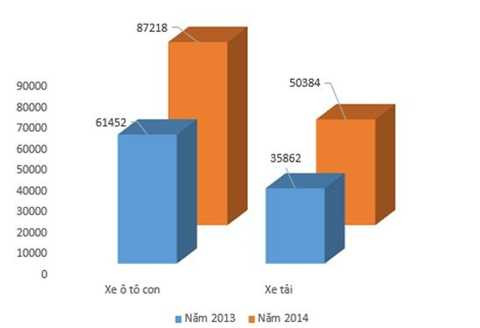 | Doanh số bán xe con và xe tải năm 2014 đều cao hơn năm 2013 |