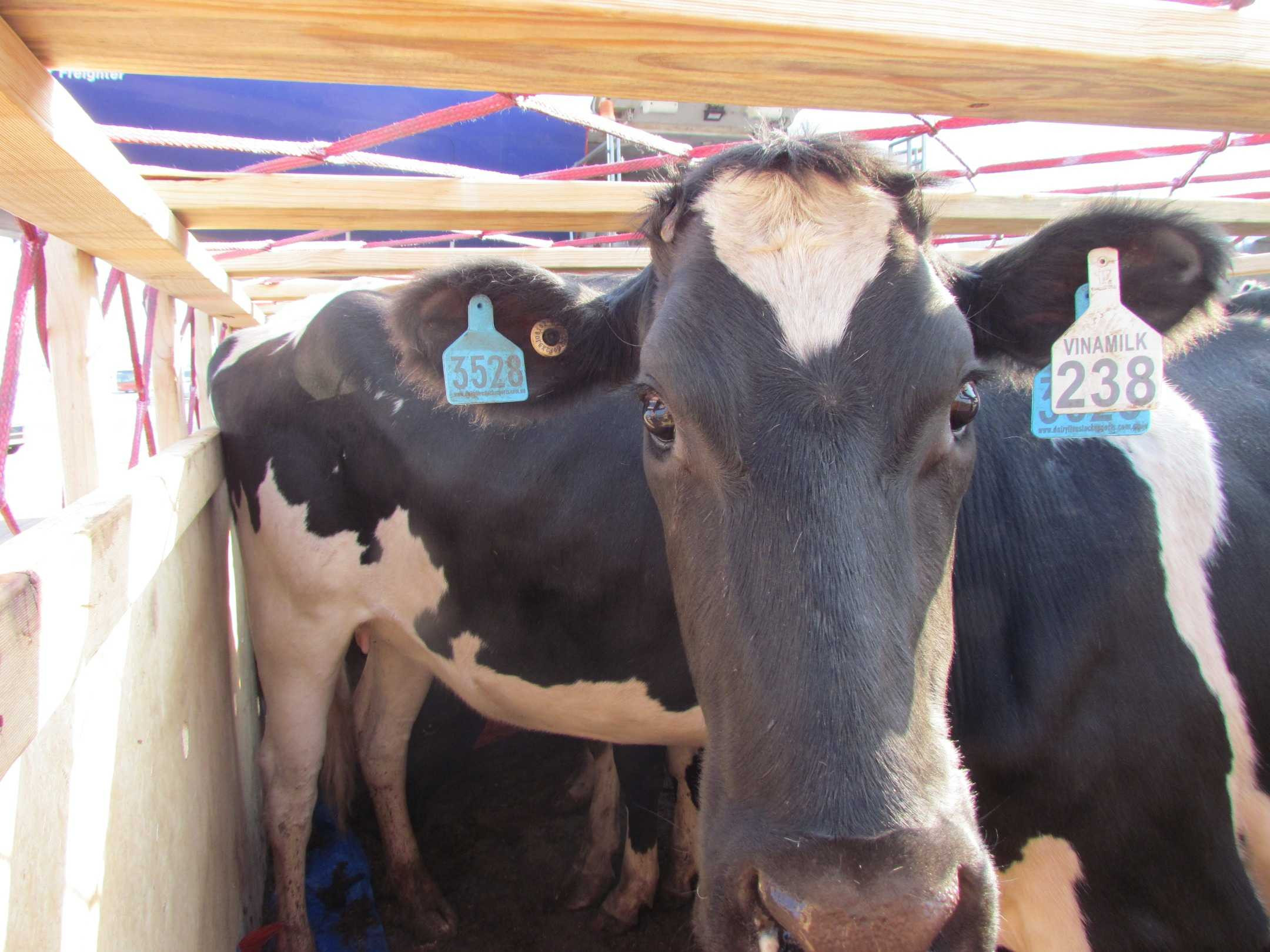 Đây là những cô bò đầu tiên trong số 5.000 con bò mang thai mà Vinamilk nhập trong năm 2014 từ Úc và Mỹ.