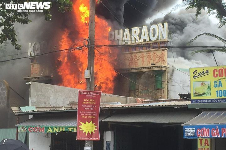 Đám cháy lớn xảy ra tại quán karaoke Pharaon trên đường Hoàng Hữu Nam (phường Long Thạnh Mỹ, Quận 9, TP.HCM) hôm 7/4/2020.
