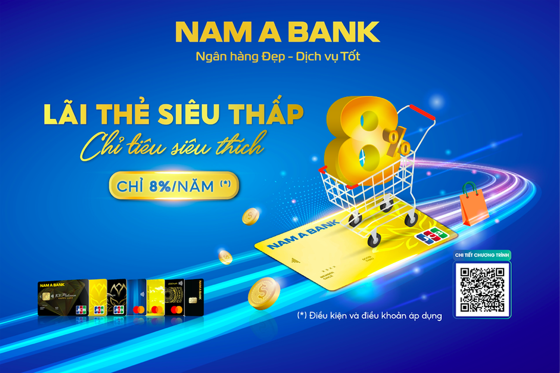 Đối với những chủ thẻ có tài sản bảo đảm là chứng từ có giá do Nam A Bank phát hành, lãi suất ưu đãi ở mức 8%/năm; có tài sản bảo đảm khác ở mức 10,5%/năm; không có tài sản bảo đảm ở mức 12%/năm. Theo khảo sát từ thị trường, thẻ tín dụng các ngân hàng hiện nay có mức lãi suất dao động khoảng 10,5%/năm đến 38%/năm.