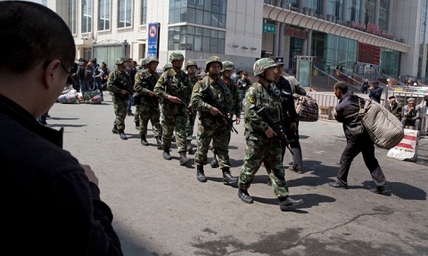 | Cảnh sát vũ trang Trung Quốc tuần tra ở Tân Cương |