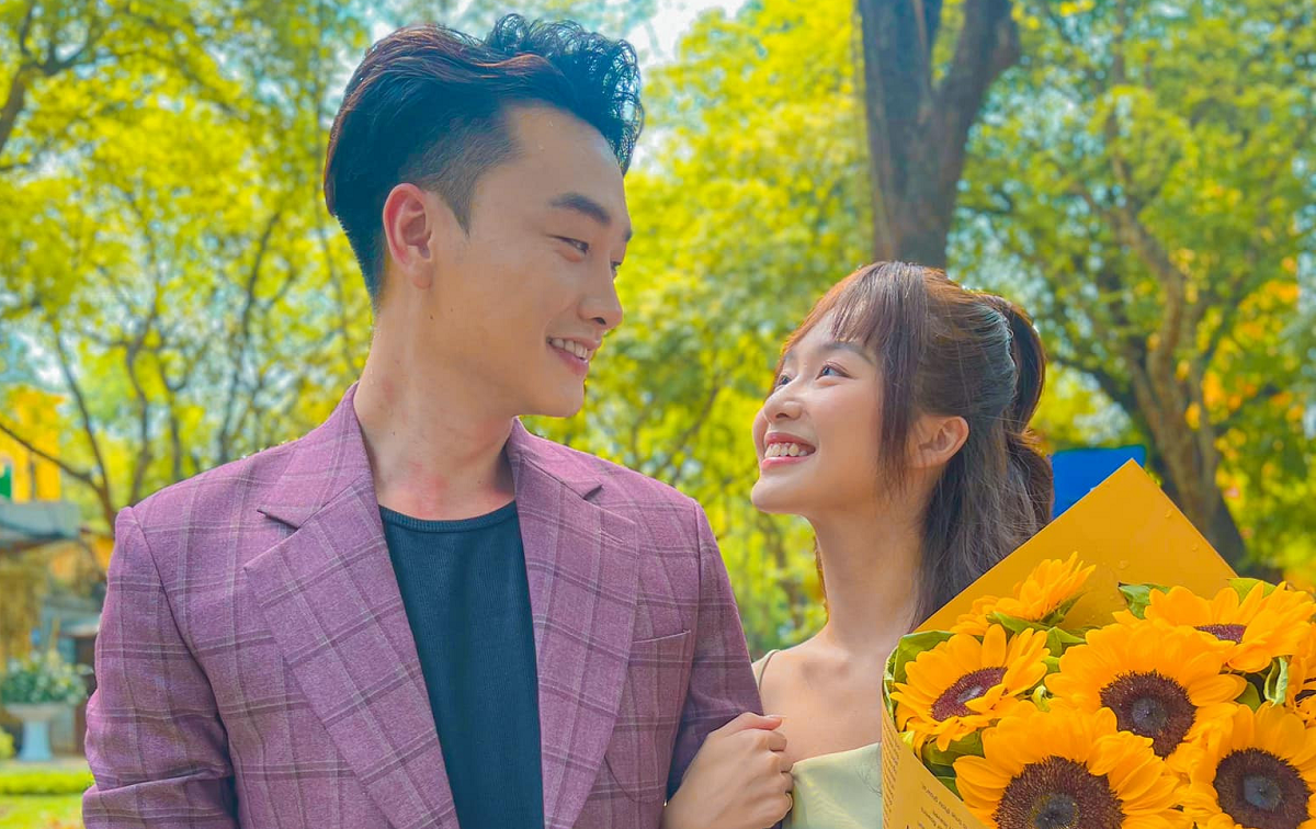 Trọng Lân và Khả Ngân ở hậu trường phim.