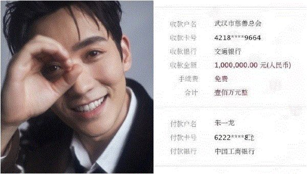 Chu Nhất Long ủng hộ 1 triệu NDT cho Vũ Hán. (Ảnh: Sina)