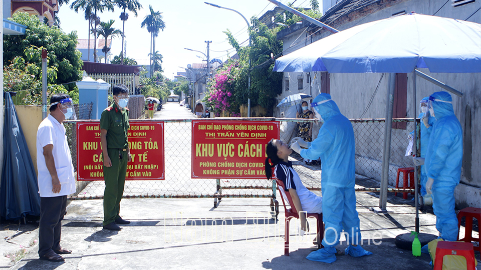 Trung tâm Y tế huyện tổ chức lấy mẫu xét nghiệm cho tất cả các trường hợp F1, F2 có nguy cơ cao và xét nghiệm sàng lọc đối với toàn bộ người dân trong khu vực phong tỏa; phối hợp với Ban Chỉ huy Quân sự huyện, Bệnh viện Đa khoa Hải Hậu tham mưu, đề xuất, chuẩn bị điều kiện, trang thiết bị, vật tư y tế đáp ứng yêu cầu nhiệm vụ phòng, chống dịch.