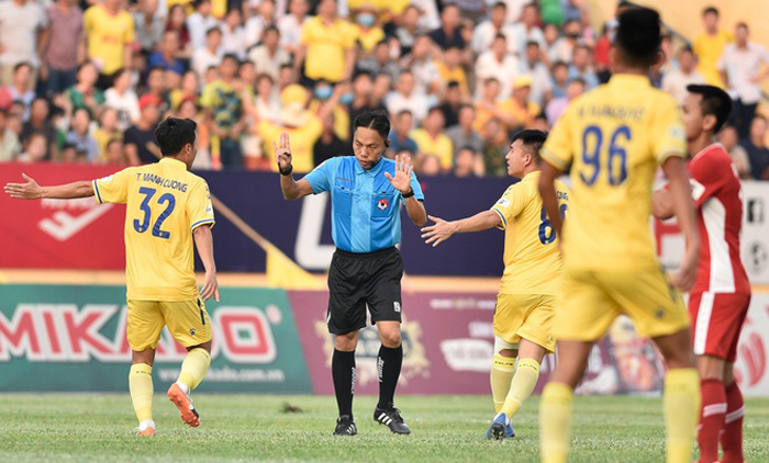 Chơi thiếu người, Nam Định nhận bàn thua 1-2 ở phút 90+2. Bàn thua này càng khiến các CĐV của đội bóng thành Nam thêm bức xúc.