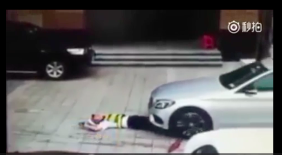Nam nhân viên bảo vệ lấy thân mình ngăn chiếc Mercedes tiến vào bãi đỗ xe, không ngờ bị nuốt chửng dưới gầm xe một cách không thương tiếc, may mắn anh ta không bị thương nặng; sự việc xảy ra hôm 23/5 tại thành phố Thâm Quyến, tỉnh Quảng Đông, Trung Quốc.
