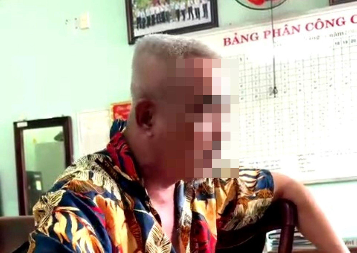 Ông Trần Tấn S. tại trụ sở công an.