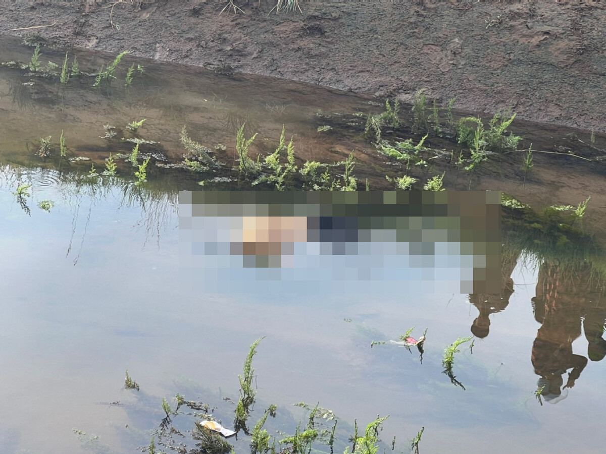 Thi thể nạn nhân nổi trên kênh dẫn nước. Ảnh: CTV