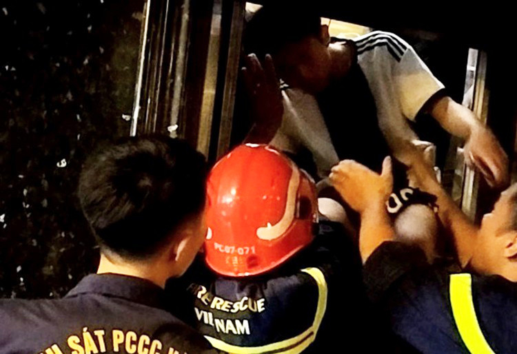 Ngay sau khi đến hiện trường, đơn vị xác định được vị trí của những người mắc kẹt trong thang máy, đồng thời trấn an, động viên tinh thần. Lực lượng sử dụng thiết bị chuyên dụng mở cửa thang máy và giải cứu 5 người ra ngoài an toàn.