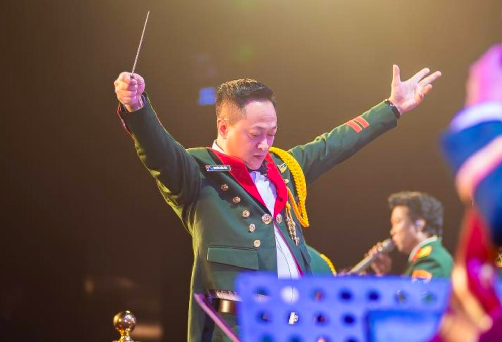 NSND Nguyễn Xuân Bắc chỉ huy dàn nhạc trong chương trình "Bài ca thống nhất"