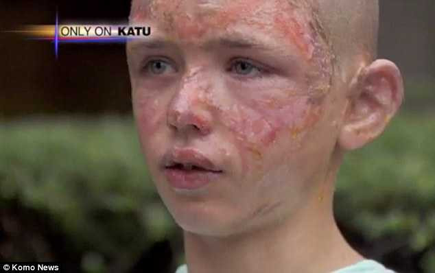 | Vì cứu bà, khuôn mặt của bé Seth Cutright đã bị lửa "tàn phá" |