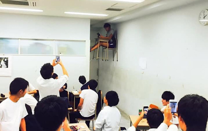 Vì nói chuyện riêng, nam sinh bị phạt ngồi một mình ở vị trí đặc biệt.