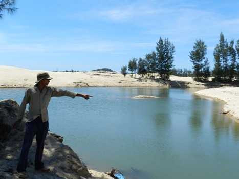 Hố khai thác titan do công ty Thành An khai thác xong bỏ lại, nơi em Hải bị tử vong