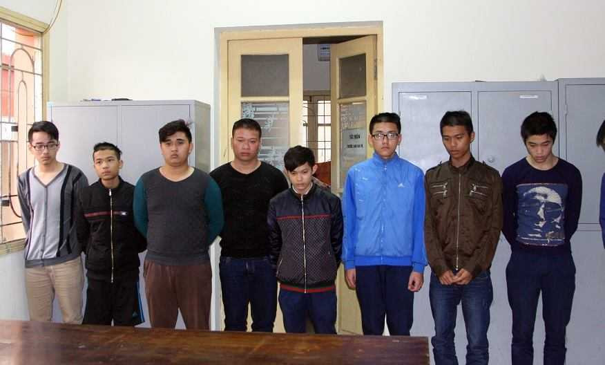 8 người bị tạm giữ gồm: Nguyễn Văn Huy (SN 1996, trú tại xóm 2, thôn Phú Đô, xã Mễ Trì, huyện Từ Liêm, Hà Nội là học sinh lớp 12B trường THPT Trần Quốc Tuấn); Nguyễn Đàm Tùng (SN 1996, trú tại số 126, ngõ 12 Núi Trúc, phường Giảng Võ, Ba Đình, Hà Nội, học sinh lớp 12A trường THPT Trần Quốc Tuấn); Đỗ Văn Trường (SN 1993, trú tại thôn Phú Mỹ, xã Mỹ Đình); Lê Minh Đức (SN 1996, ở phường phường Hồng Hải, Hòn Gai, TP Hạ Long, tỉnh Quảng Ninh, học sinh lớp 12A trường THPT Trần Quốc Tuấn).