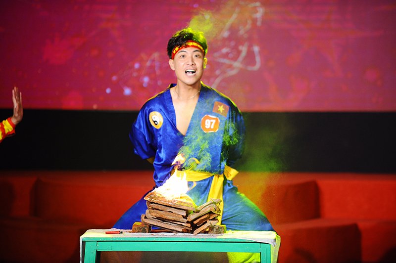 Chàng nam sinh Đại học Sư phạm Thể dục - Thể thao Hà Nội nhận được những tràng pháo tay của khán giả khi biểu diễn tiết mục võ thuật.