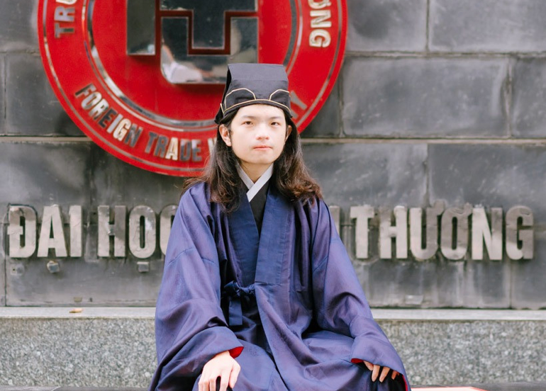 Phùng Thế Gia Lộc (sinh năm 2000, khoa Quốc tế ngành Quản trị Kinh doanh của Trường ĐH Ngoại thương) gây ấn tượng với thầy cô và bạn bè khi thường mặc các trang phục truyền thống như áo tấc, áo ngũ thân tay chẽn hay giao lĩnh,… đến trường vào thứ Hai.