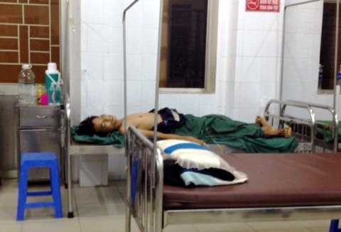 | Nạn nhân Hoàng Vũ Thanh Tài đang cấp cứu tại bệnh viện (Ảnh: Tuổi Trẻ) |