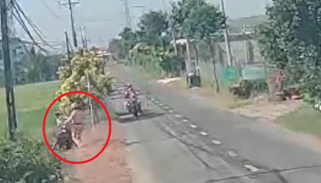 Khi áp sát được nam thanh niên, 1 trong 2 người mặc sắc phục CSGT đã dùng gậy điều khiển giao thông đánh tới tấp nam thanh niên, đạp xe máy xuống bờ ruộng.