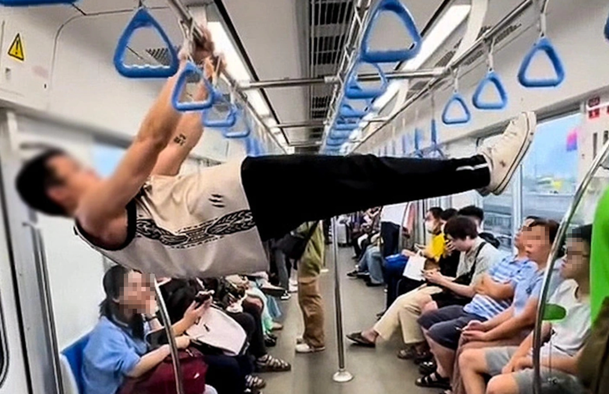 Theo hình ảnh clip lan truyền trên mạng xã hội 2 ngày qua, một thanh niên dùng tay nắm treo trần và thanh sắt dọc trần toa tàu metro Bến Thành – Suối Tiên để làm các động tác như thể dục dụng cụ, hít xà đơn.