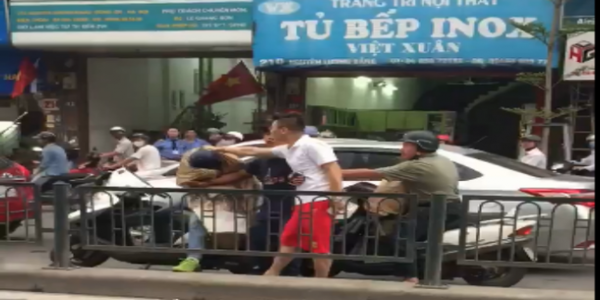 Ngay sau đó, nhiều người đi ngang qua đã can ngăn, nhưng thanh niên này vẫn hung hăng không chịu buông tay ra khỏi đầu thanh niên kia. Chỉ đến khi một người từ trên chiếc xe ô tô phanh lại bước xuống can ngăn thì thanh niên áo trắng mới chịu dừng lại.Theo dõi đoạn clip thấy rằng, nam thanh niên mặc áo trắng đã liên tục túm tóc, nắm gáy một người đi xe máy khác trên đường và lời qua tiếng lại.
