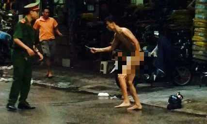 Chiều 21/7, một người đàn ông khỏa thân cầm kéo gây náo loạn phố Hàng Cháo (phường Điện Biên, quận Ba Đình, Hà Nội). Công an đến khống chế đưa anh ta về trụ sở lấy lời khai.