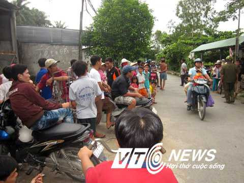 | Người dân hiếu kỳ tập trung xem lực lượng chức năng điều tra vụ việc. Ảnh: K.H |