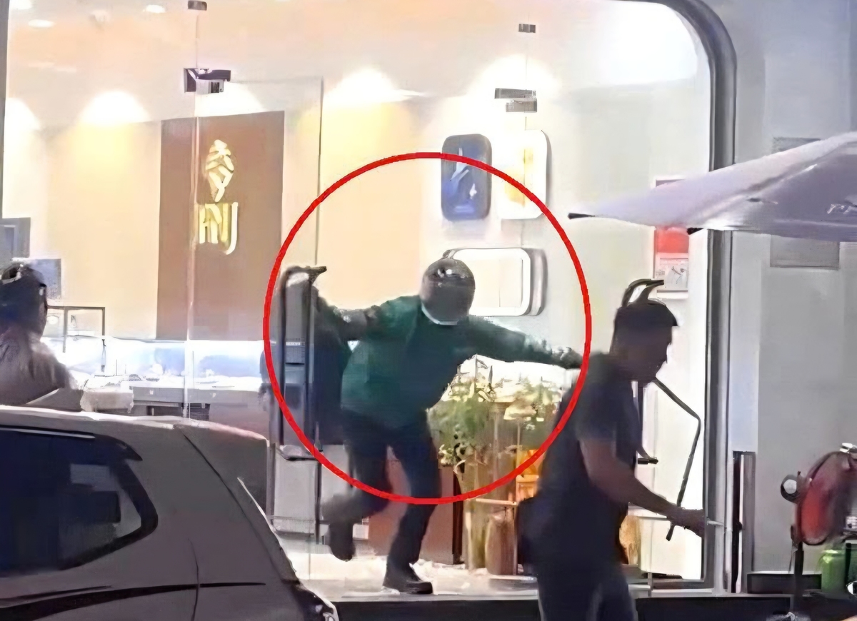 Kẻ cướp tháo chạy sau khi cầm búa xông vào cướp tiệm vàng. (Ảnh: C.R)