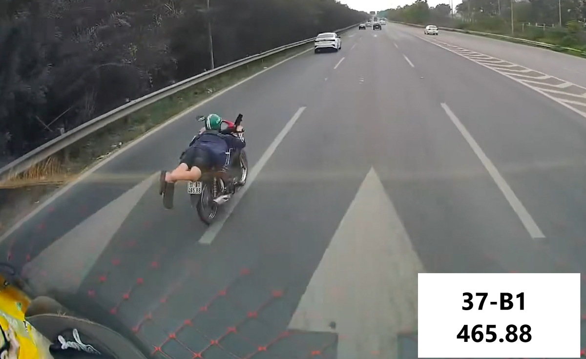 Nam thanh niên nằm rạp lên yên xe máy, lao vun vút trên đường cao tốc