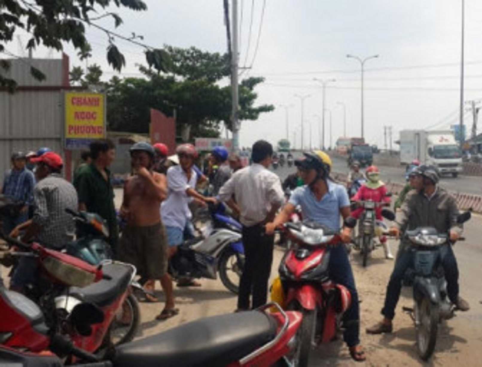 | Sự việc thu hút người dân đứng quan sát gây náo loạn cả đoạn đường nhiều giờ liền |