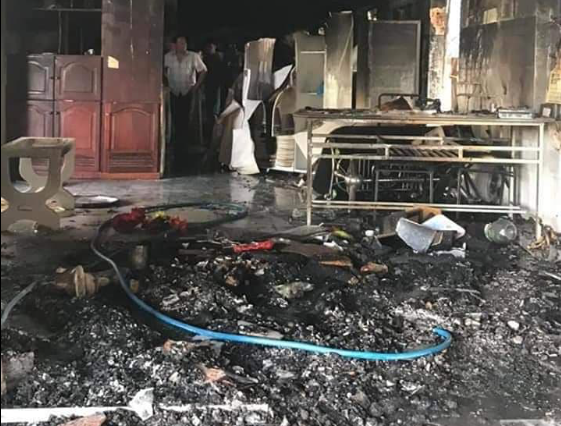 Căn nhà bị cháy.
