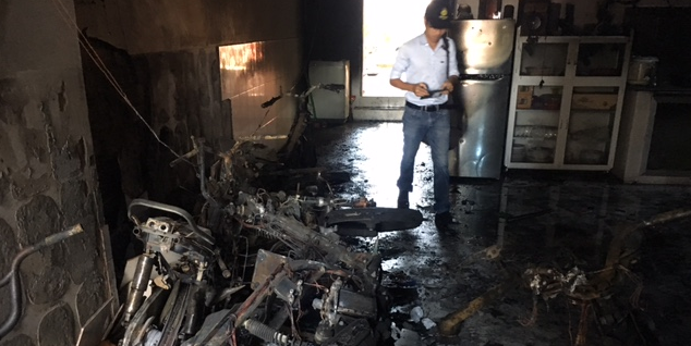 Thấy lửa cháy và vật dụng trong nhà bị nổ, hàng xóm đã lập tức kéo máy bơm chữa cháy. Sau 1 giờ dập lửa, ngọn lửa đã được khống chế, không lan ra những phòng khác. Tuy nhiên, ngọn lửa đã thiệu rụi 5 xe máy, 1 tủ lạnh, 1 máy giặt và nhiều vật dụng có giá trị khác.